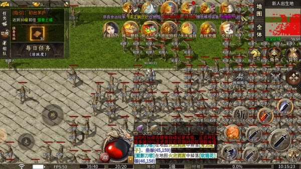 1、伤害提升后金币获取速度会加快,到了后期如果出现玩家数量多、BOSS不够打的情况,就可以去土城找卷轴商人,用金币抽取卷轴。