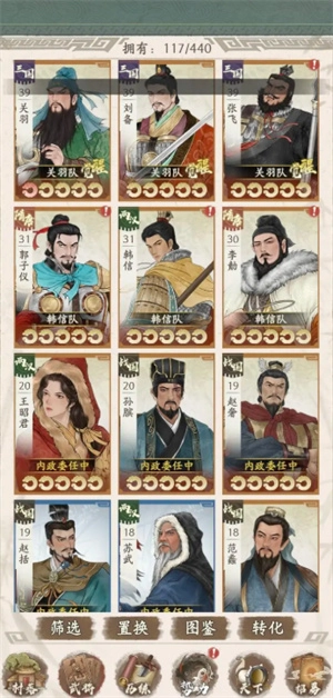 5、游戏内的武将支持自由合成,通过这种方式可以解锁全新的武将。