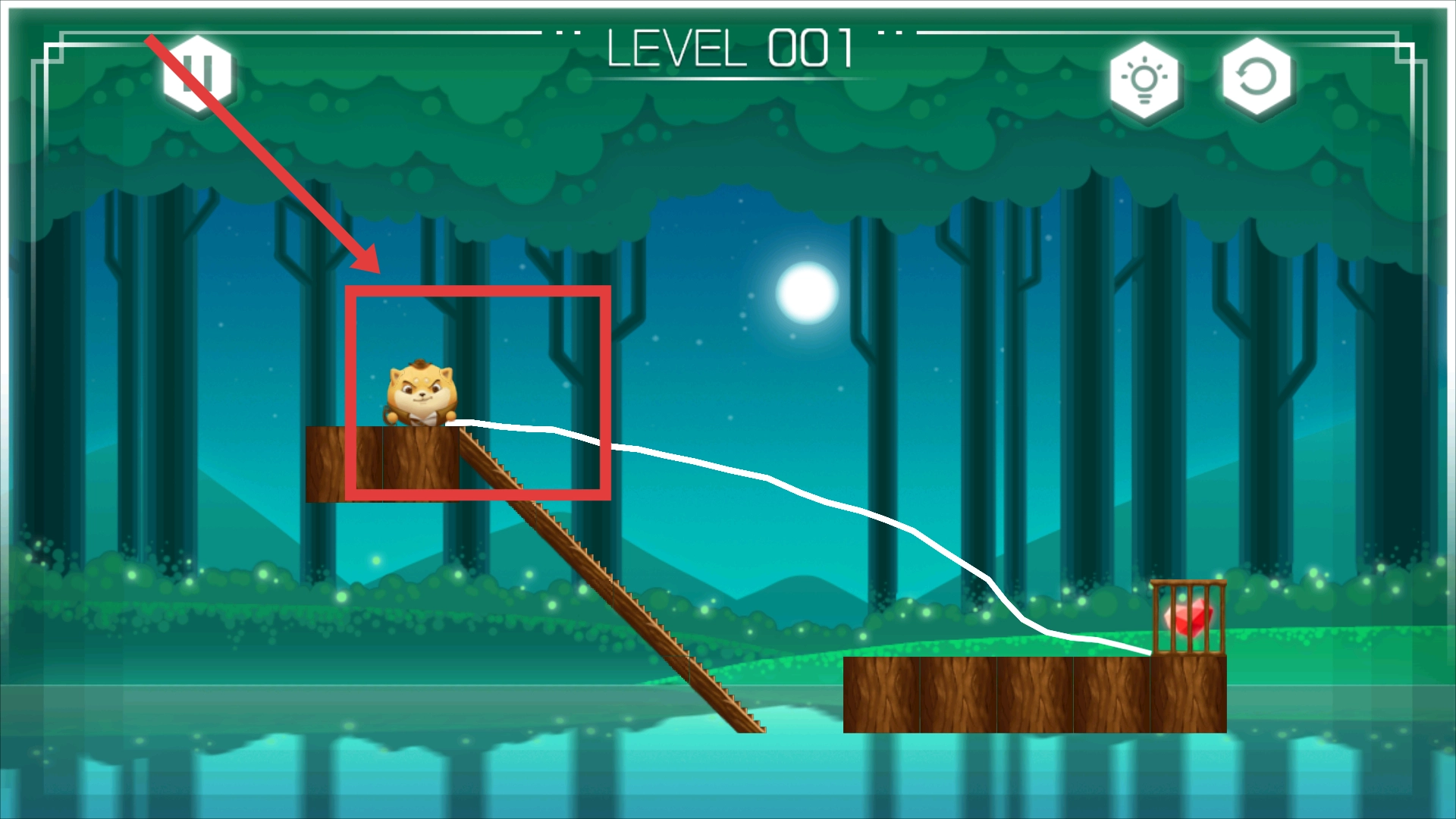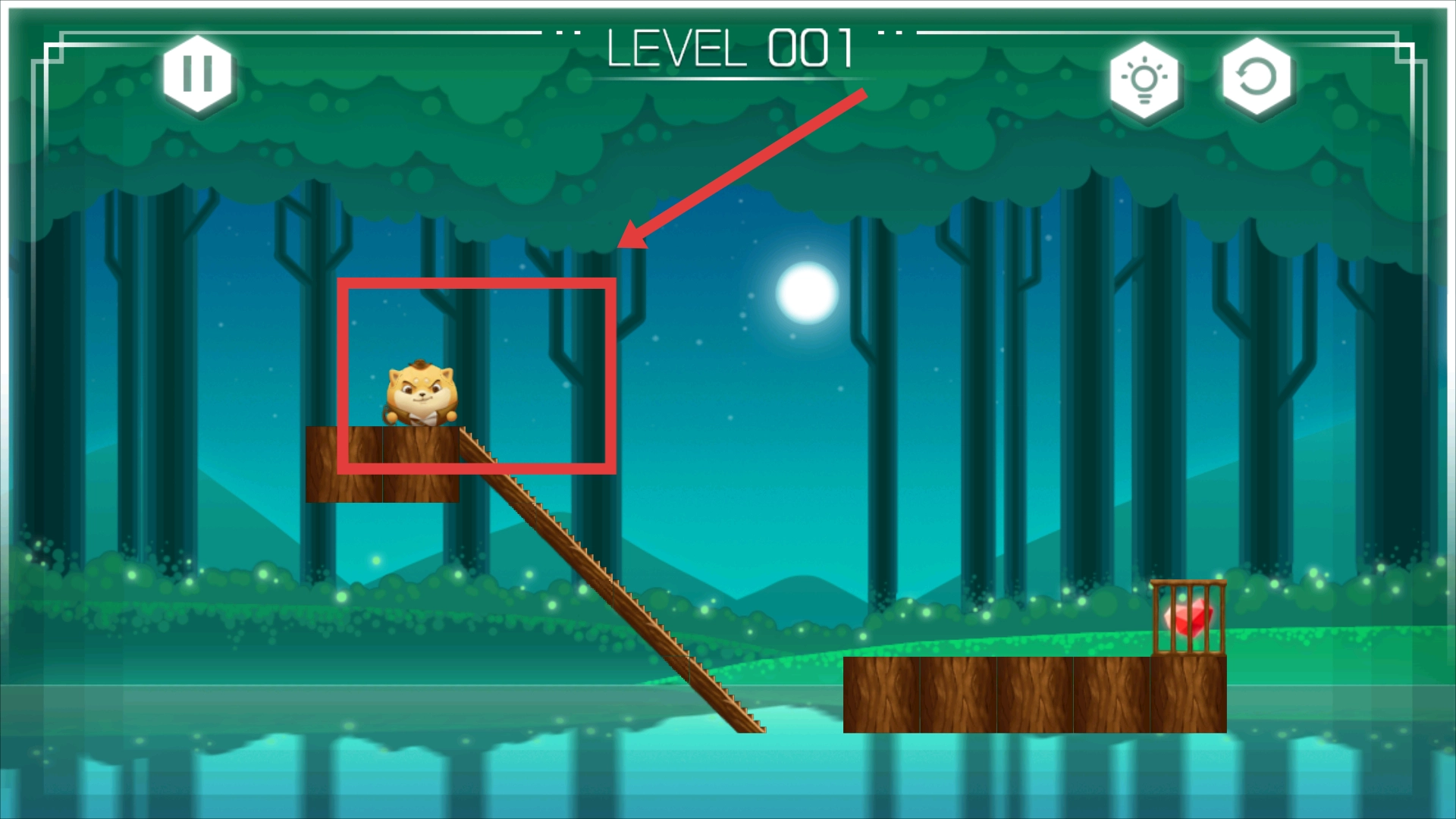进入第一关,映入眼帘的是森林场景中小动物站在木板上的画面,此刻正准备为它规划移动的路径。