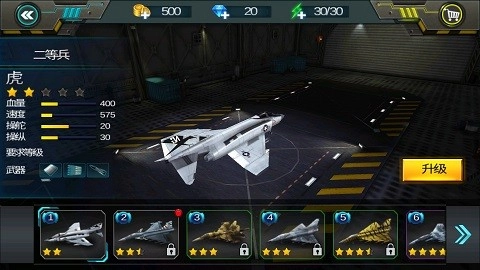 在熟悉了具体的操作玩法之后,接下来就是进阶攻略的部分了。机库中陈列着各式各样的飞行战机可供挑选,与此同时,你还能通过完成作战任务积累金币,用这些金币来升级已有的飞机,从而增强飞机的操作手感,提升整体战力。