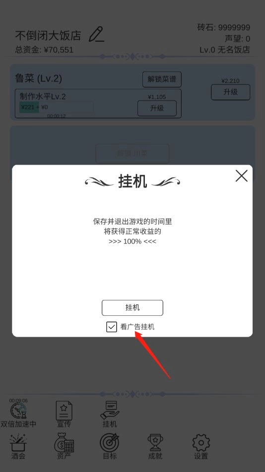 游戏里完成任务、餐厅升级都可以领红包,非常简单。