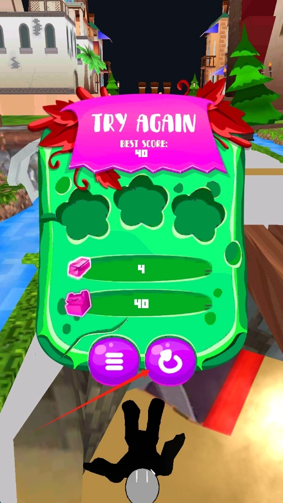 在失败界面,系统会依据你的最佳得分情况展示相关信息。你可以点击重新开始按钮,再次发起挑战,努力争取更高的分数,也可以选择点击重开游戏按钮重新开始。