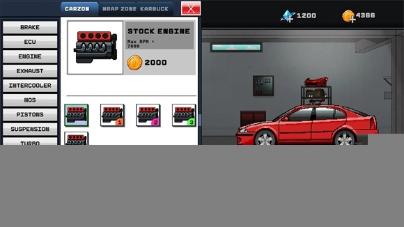 10、在主界面点击Garage,然后再点击carzon可以用金币购买各种车辆配件来进行改造。
