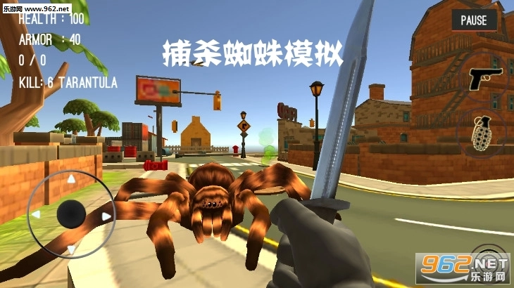 《捕杀蜘蛛模拟游戏》是一款3风格的动作游戏,巨型蜘蛛在城市里横行霸道、肆意破坏。身为守护人民安全的特种兵,你的任务就是消灭这些可恶的蜘蛛——你可以用匕首砍击,用手枪射击,还能使用炸弹等武器。消灭蜘蛛,城市的安全就由你来守护。