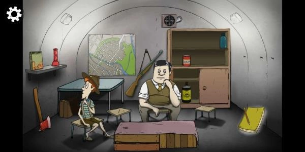 当60秒结束后,玩家带着所救的人员和物资成功来到地下室,游戏的画面就转变成了平面2D的视角,在这时的界面中玩家能够观察到自己所带的物质分别陈列在地下室的各个位置,屏幕右下角的笔记本将通过日记的方式描述着玩家所控制成员的状态以及发生的事件,随着人物状态的不同,饥饿、生病都会通过形象的人物作画表现出来,倒也挺有意思。