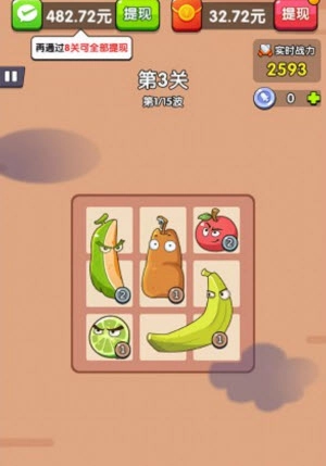 这款水果保卫战和之前的水果王国玩法相同,新人只需轻松玩一关就能领取红包。左上角的奖励需要至少通过第10关才能提现,要是红包奖励比较丰厚,也可以多玩几局游戏。