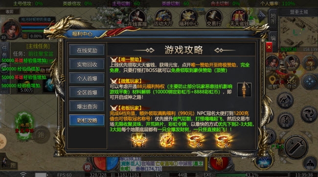 上线后优先领取“天天省钱”福利,就能获得元宝;接着打开唯一赞助并升级到终极赞助,全程都是免费的——只要通过打怪、挑战BOSS,就能免费拿到豪侠赞助(也就是顶赞)。