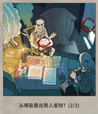 答案:点击老人手中的钱会变成纸币,右边的电视机会伸出一只手,点击左边的位置似乎要起火了。
