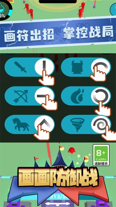 《画画防御战》巧妙融合绘画与策略玩法,为你带来一场视觉与脑力的双重享受。在游戏中,你将化身魔法师,通过画出不同的符号来召唤元素之力,抵挡一波又一波袭来的敌人。独特的游戏机制、多样的魔法体系加上精致的画面,让你体验到全新的游戏乐趣。面对种类繁多的敌人和精心设计的关卡,你需要灵活改变战术、搭配魔法组合,才能应对瞬息万变的战场局势。