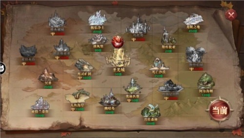 在游戏的世界地图界面,玩家能够查看所有游戏内的地图及其对应的等级信息。