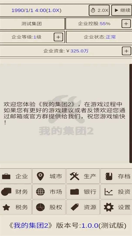 我的集团2最新版是一款模拟经营类单机文字游戏,玩家将化身企业家,白手起家构建商业帝国。游戏会提供初始资金,玩家需要借助买地、建厂、投资等方式逐步拓展企业规模,与此同时还要应对市场波动、经济危机等实际问题!