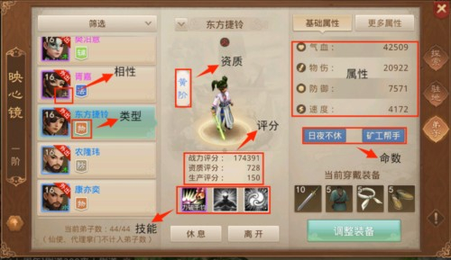 2.弟子的相性、技能、类型、资质、评分、命数如何查看。