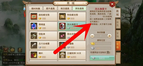 - 与NPC对话,选择使用改头换面卡进行门派转换。