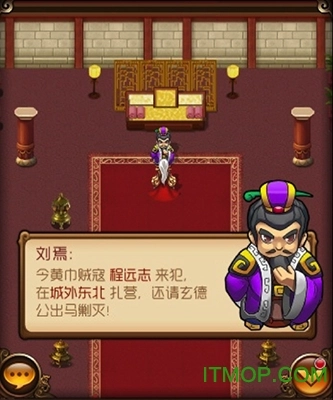 结义之后,便要报效朝廷了。我们依照地图的指引,走进宫殿,见到了太守刘焉。