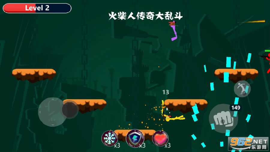 1:在游戏里,你能挑选不同的火柴人,与众多火柴人一同开启全新的乱斗冒险。游戏操作相对简单,还有丰富的道具和多样的场景,你都可以轻松体验。