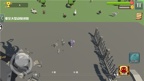 小僵尸的灵活性十分出色,通过模拟摇杆就能轻松做出各种变向动作来躲避敌人,不过它的攻击性比较弱,要留意体型上的差距,避开那些看起来比自己强壮或者手持武器的生物。