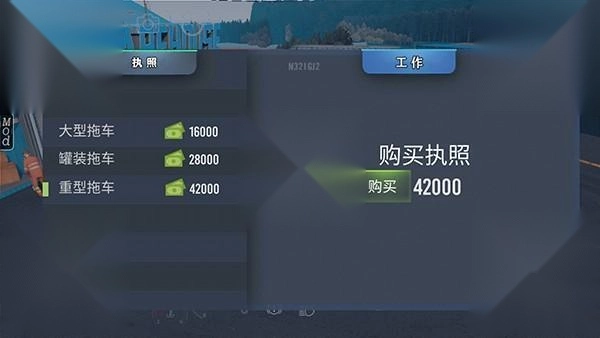 5、获取工作前需要购买执照,执照分为四种,分别是小型拖车、大型拖车、罐装拖车以及重型拖车执照(小型拖车执照默认是有的),大家可以根据自己目前需求购买。
