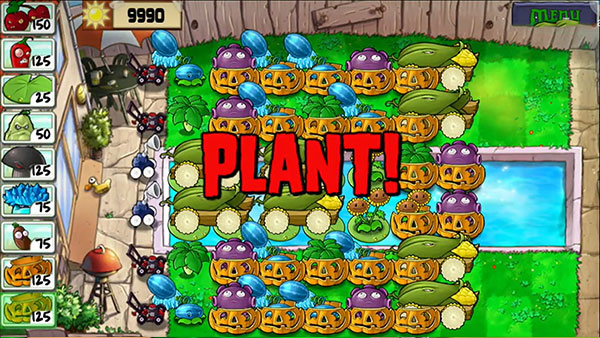 火弹炮的布局思路是这样的:先在最后排种上高坚果,接着给它套个南瓜头,后面的位置全部种四发豌豆射手。这样一来攻击伤害相当恐怖,僵尸别说想啃南瓜头了,连碰都没碰到就被消灭了,就算是比较肉的僵尸也活不下来!