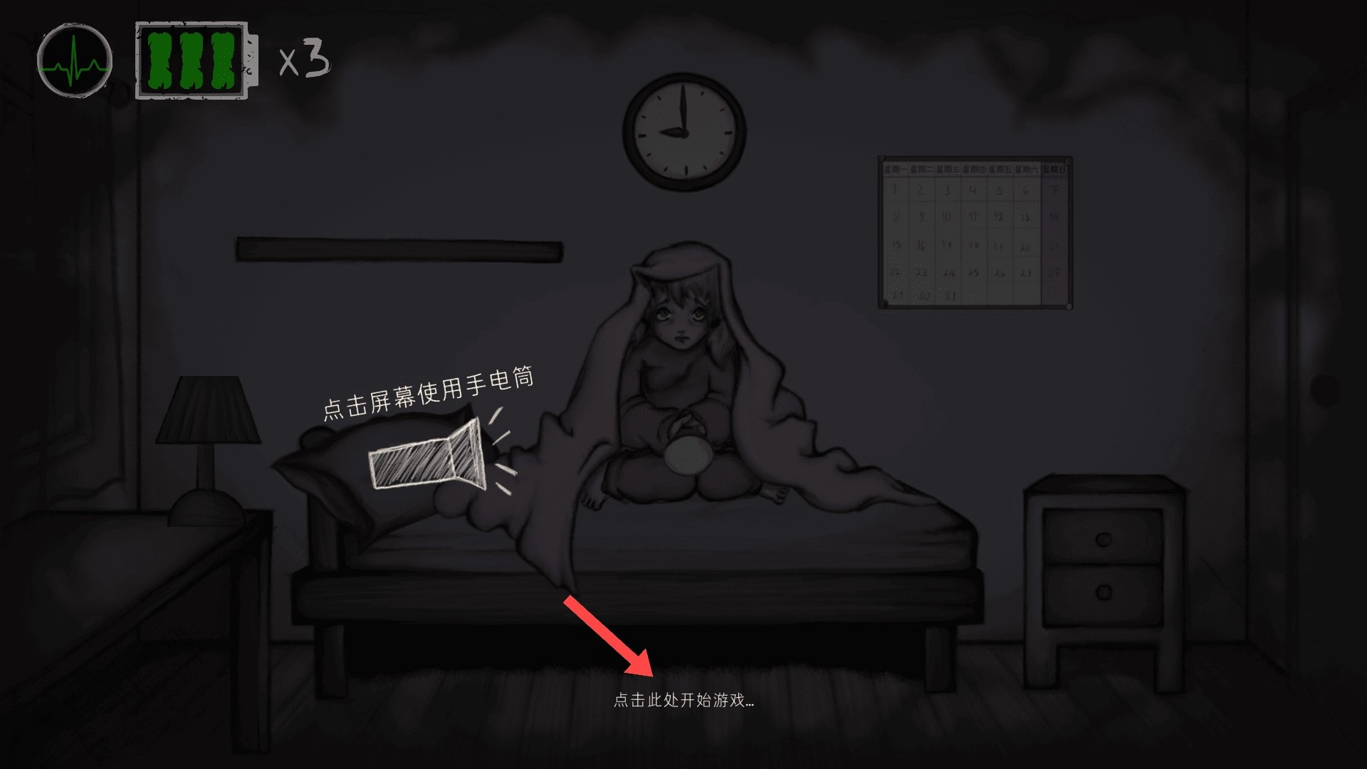 手电筒的电量情况是:它好像能驱散这些吓人的生物,可电池电量看起来不太充足。