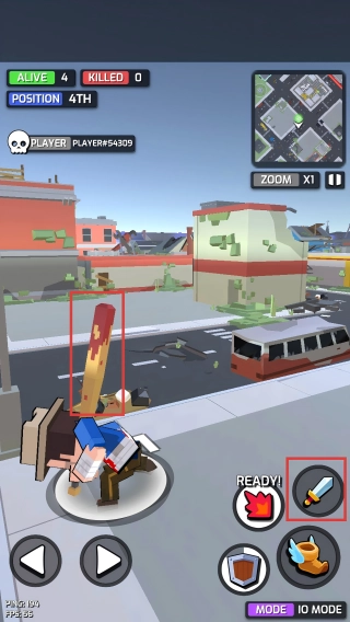 当敌人离我们比较近时,你可以点击右下方的武器按钮,直接用武器攻击敌人,借助近战的优势来击败对手,这样就能提高排名了。