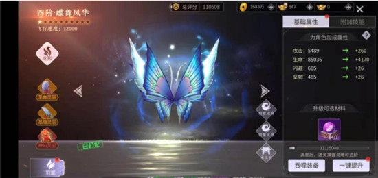 拥有羽翼化形符的情况下,能够为羽翼幻化提升星级。在此处增加的战力数值,最低都是以几千为起始单位的。