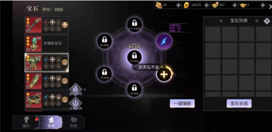 装备的不同部位都支持宝石镶嵌,每个位置最多可嵌入7颗宝石;宝石孔需通过装备升阶逐步解锁,宝石则可通过挑战玄灵宝库副本获取;相同等级的宝石能够合成升级,从而为装备带来更强大的属性加成。