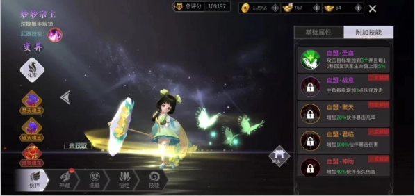 伙伴能为玩家带来攻击、生命、破甲、防御与增伤的全方位属性加成,每个伙伴都有独特的天赋技能,其攻击效果各有差异。例如妙妙公主的“灵爆仙诛”技能,可对至多5个敌人造成110%的攻击伤害。通常来说,伙伴的稀有度越高,天赋技能就越强。在游戏里,消耗升级丹能够提升伙伴等级,不过伙伴等级最高不能超过玩家自身等级;此外,使用魂玉还能直接进一步增强伙伴的属性。玩家参与“遗失药园”副本,就能获取到升级丹和魂玉这类道具。