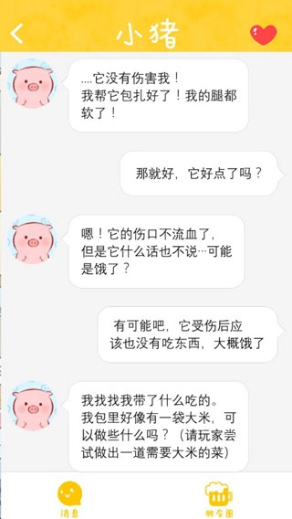 这是一个能和小猪互动的平台,也是小猪的社交圈,你可以把完成的剧情记录在朋友圈里。