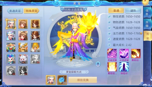 灵宠也被划分为普通灵宠与特殊灵宠两类,特殊灵宠具备特殊天赋,在进阶时能够得到全资质的提升。灵宠有着洗髓、资质提升、喂养、进阶、技能打书等多种培养功能,经过这些培养操作后,灵宠的战斗力将会有显著的增强。