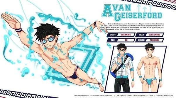 阿万·盖瑟福德(Avan Geiserford)有着坚韧不拔的性格,外表看起来有些严肃,作为奥林巴斯大学的学生会主席,这对一名同时还是游泳队成员的大二学生而言,是相当亮眼的成绩。埃文平时习惯独来独往,但面对自己信任的人时,态度却十分真诚。不过,他内心很想展现自己风趣的一面,这也是他加入Jock Studio这类俱乐部的原因。