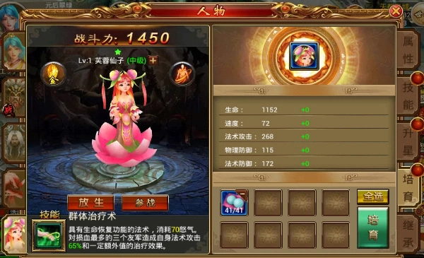 宠物的培育操作可以点击人物界面进行: