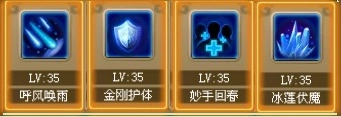 冰莲伏魔:消耗100点怒气,对全体敌军造成基于自身法术攻击与法术伤害的伤害,同时使敌人在接下来的2回合中伤害输出降低。