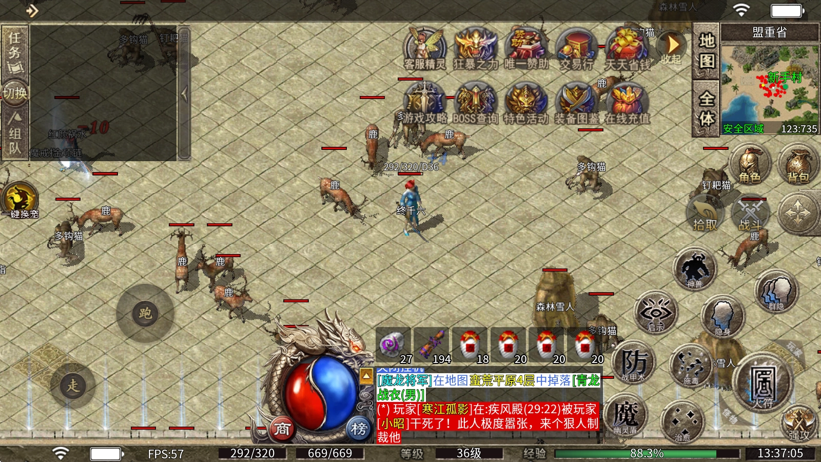 本服务器共有5个大陆,大陆等级越高,怪物难度越大,BOSS数量越多,掉落爆率也越好。