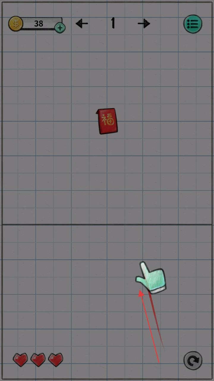 游戏界面显示当前目标是带有福字的红包,按照提示进行操作,试着点击相关区域,开启游戏互动环节,从而积累金币。