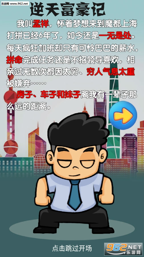 这是一款极具特色的手机游戏,你将从零开始,一步步打拼事业,最终登上人生巅峰,迎娶白富美,担任CEO,这真是件令人愉快的事,期待你来体验!