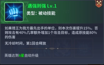 阵容详解:猎王辛西亚是一名上限极高的输出核心,她的四个技能均为最直接的伤害提升效果,其中主动技能必杀拳与被动技能遇强则强,为辛西亚赋予了强劲的收割能力。