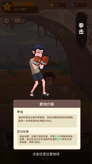 1、首先进入我不是废柴最新版游戏,你将从一个废柴开始,学习一种功夫,例如拳击;