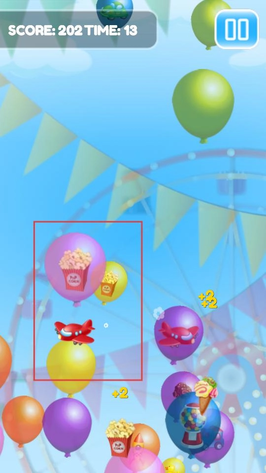 视觉风格设计:运用明快生动的卡通艺术风格,以富有童真趣味的气球造型为核心元素,结合轻柔舒缓的背景色彩搭配,构建起轻松惬意的游戏氛围。