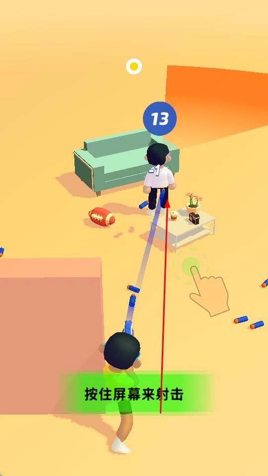 长按屏幕即可操控角色发射软弹,瞄准目标后命中就能推进进程。