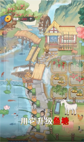 闲暇时种树、浇水、收获果实,最后兑换成自己的钱;