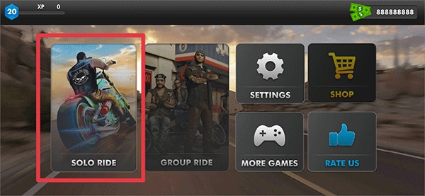 打开游戏,在首界面中点击solo ride