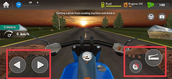 游戏开始后,可通过左右按钮操控摩托车的方向,右侧的按钮分别对应倒退和前进功能。