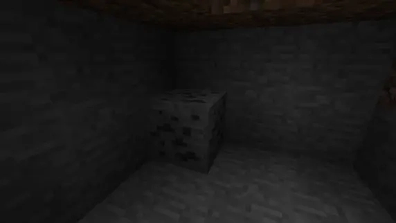 现在,我们得开采一些煤矿来得到煤——它能帮我们制作火把,也可以作为燃料使用。煤矿的外观是黑色的,因此很容易辨认,而且开采一处煤矿就能获得好几块煤。