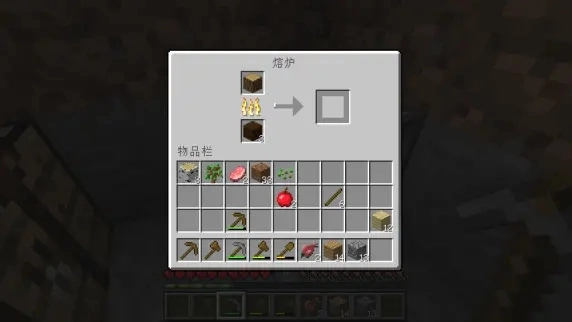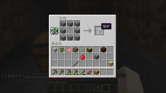 然后我们需要取出刚才挖掘到的石头,依照箱子的摆放方式来放置这些石头,这样就能得到熔炉了。