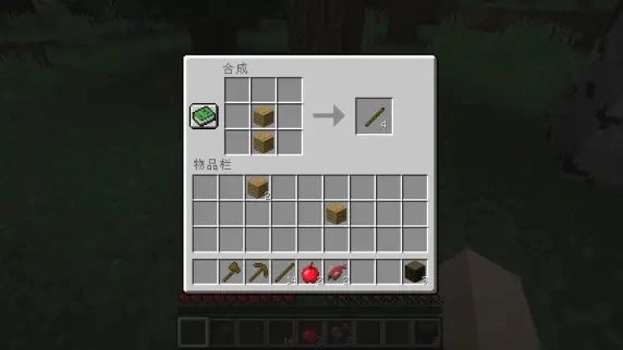 “工欲善其事,必先利其器”,所以我们第一步要制作的是木棍。有了木棍,才能合成更高级的工具,接下来我们先合成一把木斧、一把木镐和一把木铲。