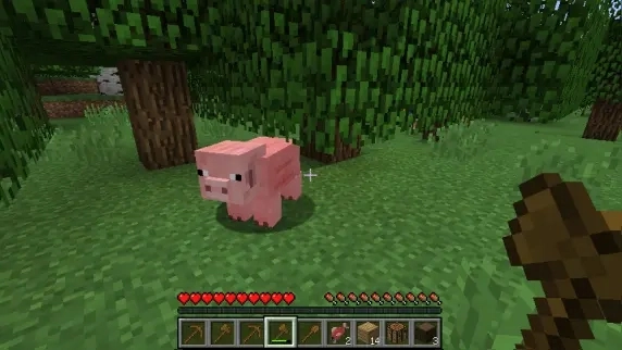 除此之外,如果我们发现了其他小动物,大可以用手中的道具尝试攻击它们来获取资源,比如我们在这里就遇到了一头迷失方向的小猪……