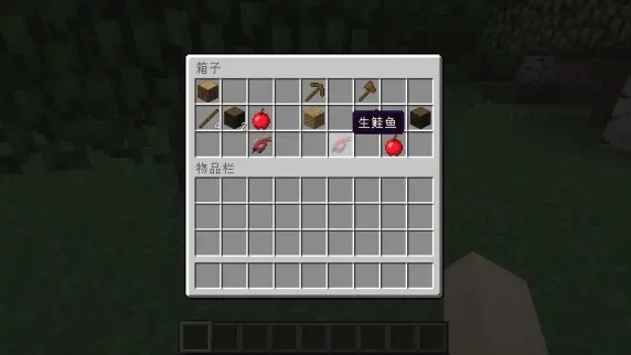 八块木头,把它们中空摆放就能合成箱子,这个箱子有九列三行总共二十七格的储物空间。我们可以把暂时用不上的东西,或者担心死亡时会丢失的物品都存放在里面。