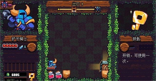 关卡中也会出现钥匙,它们可以用来开启宝箱和通关的大门,宝箱里面会有临时装备之类的物品。