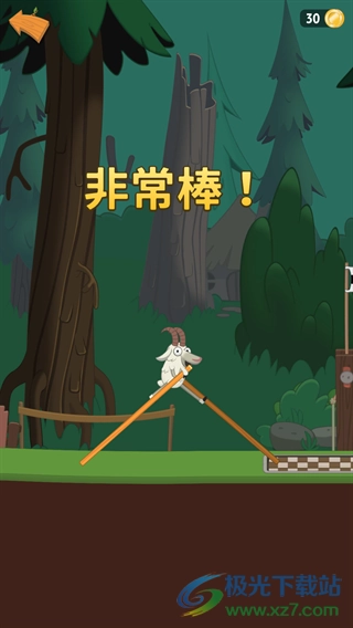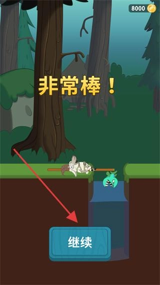 4、成功跨过障碍后显示【非常棒!】,点击【继续】按钮,进入下一个关卡环节继续挑战。