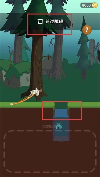 2、关卡目标为【跨过-障碍】,操控角色移动至障碍区域,准备通过操作跨越该障碍推进关卡。